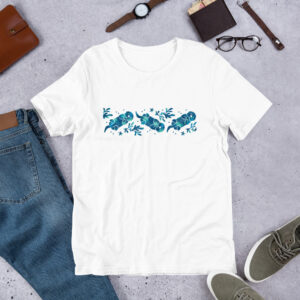 This is an alternate, more subtle version of our larger Sea Otter Tie-Dye design. The t-shirt still boasts a soft, lightweight feel and bright hues to add a little splash of color to your wardrobe.